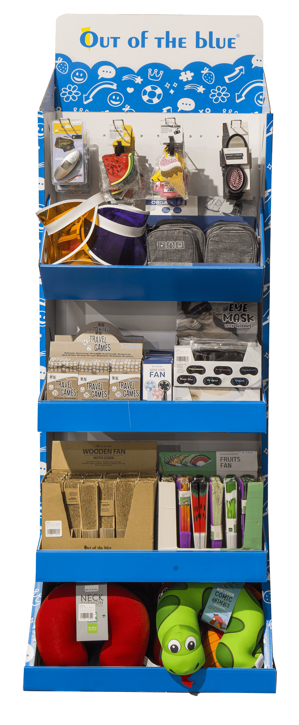 selección de 13 productos de viaje para presentar en el expositor de suelo OOTB, incluye: 12 x 71/3365, 36 x 62/3991, 36 x 3947, 24 x 76/3338, 24 x 02/4036, 12 x 69/1023, 24 x 79/7009, 48 x 61/2557, 12 x 61/7047, 25 x 230152, 48 x 230030, 24 x 32/2024, 1