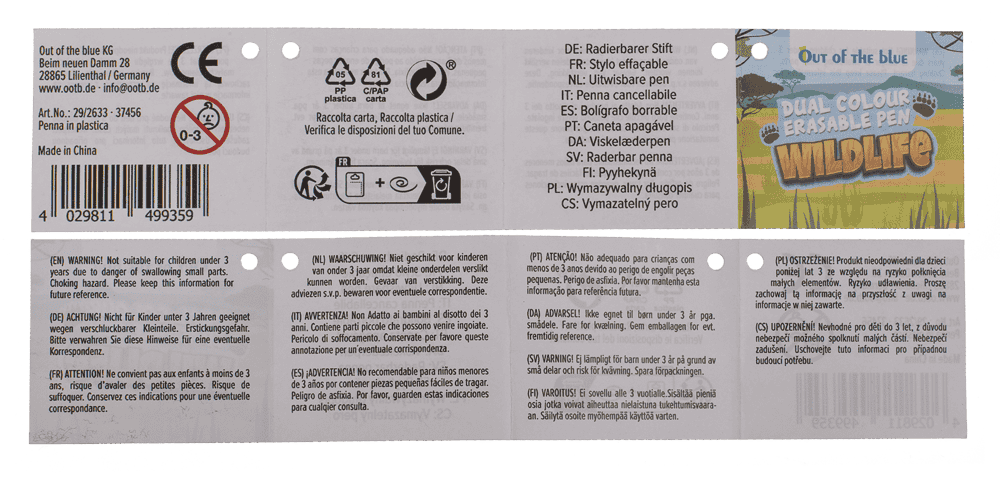 Stylo bicolore effaçable, animaux sauvages