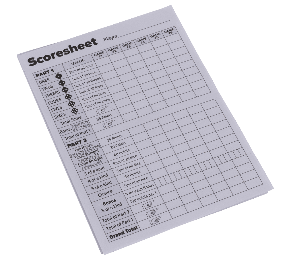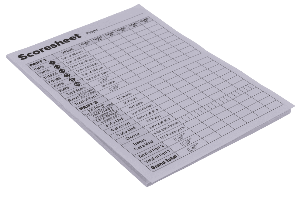 1 scorepad (25 sheets) on blicter card